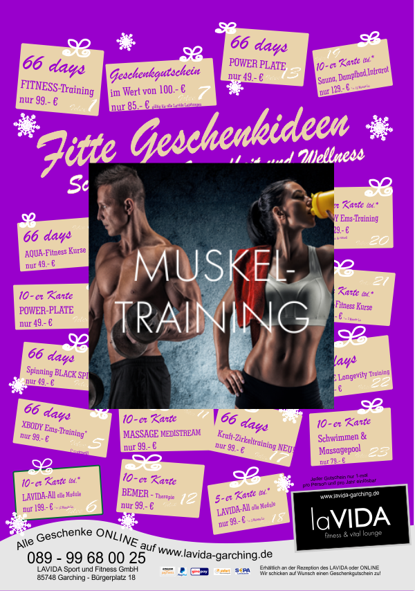 Für das Training im Lavida erhalten Sie eine personalisierte Chipkarte, für die ein Pfand von 18.- € hinterlegt werden muss und das Sie nach Beendigung der Mitgliedschaft wieder zurück erhalten!